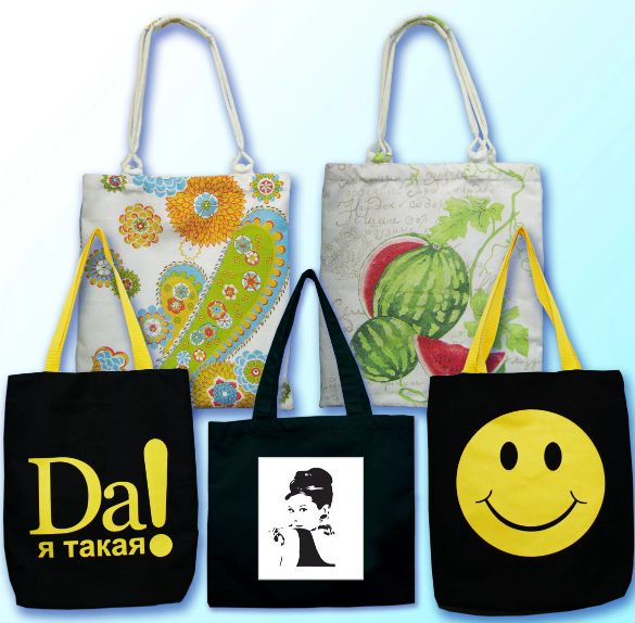 Изображения наносятся методом сублимационной печати. Этот способ позволяет четко передавать мелкие детали и широкую палитру цветов. У нас можно заказать рекламные сумки с логотипом или с полной запечаткой ткани по эскизам заказчика. Полученные изображения отличаются повышенной устойчивостью к истиранию, не выгорают на солнце и изделия, на которые они нанесены, можно стирать.